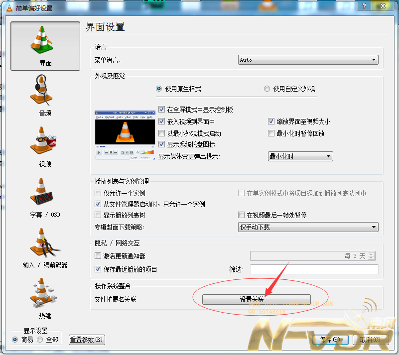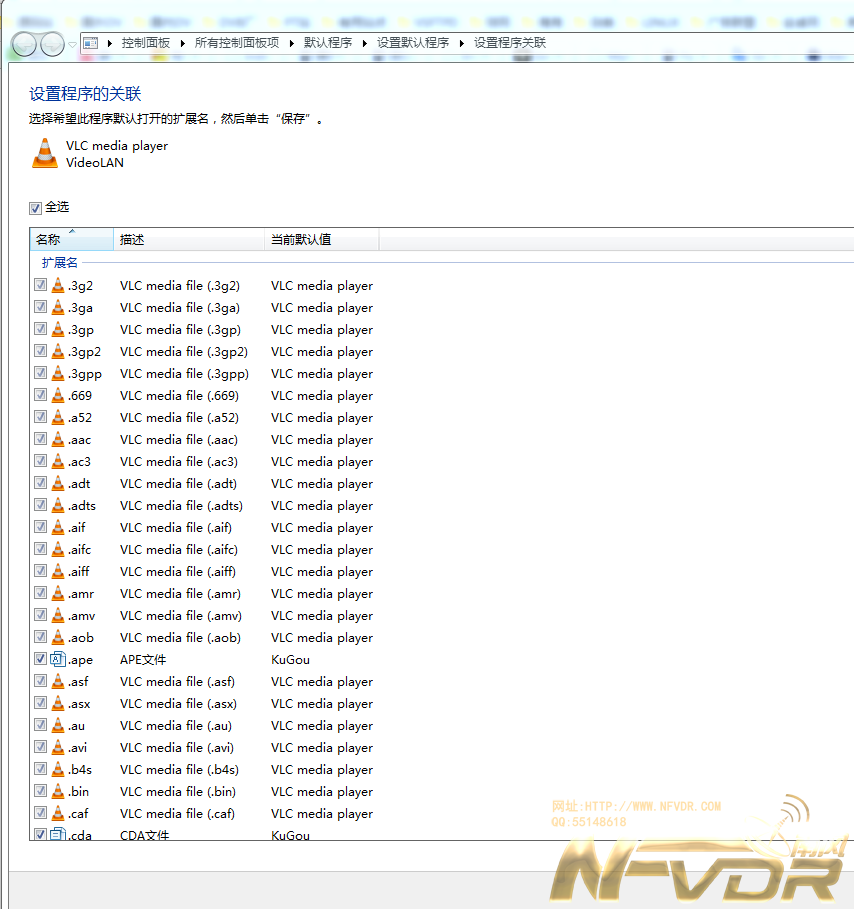 安装好后。打开VLC。设置一下文件关联。全选打√。