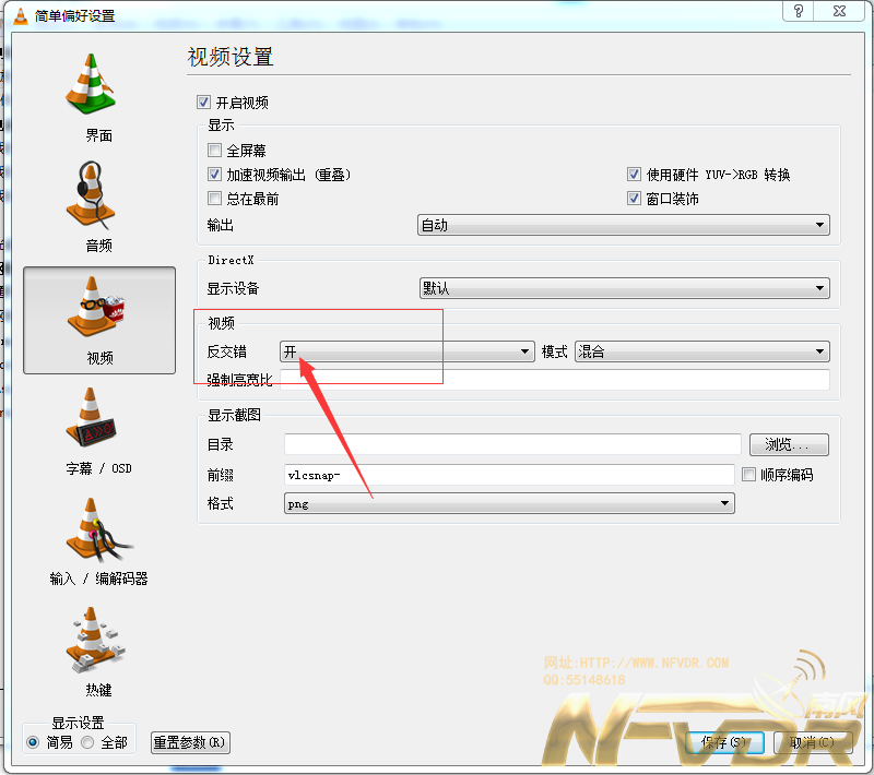 然后工具设置视频。把反交错打开。要不看高清会有锯齿。